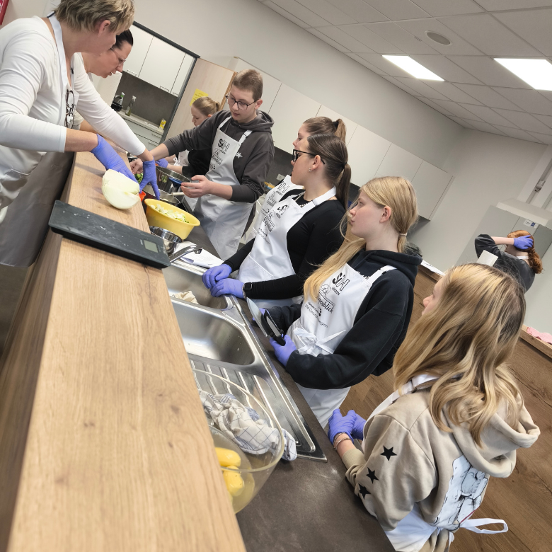 Zum Abschluss des Projektes fand ein durch die Schüler:innen und die Verantwortlichen von Küche und Hauswirtschaft des Seniorendomizils ein Kochevent statt, bei dem das erlernte Wissen zu Ernährung in die Praxis umgesetzt wurde.